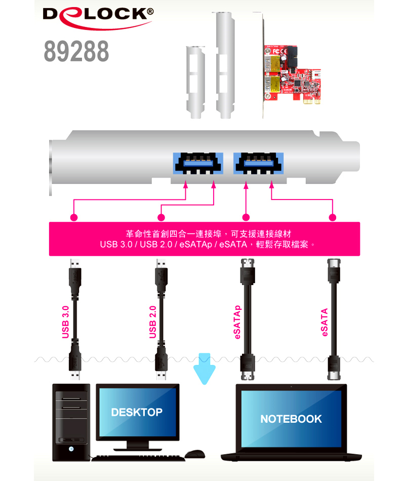 • Delock PCI express擴充卡4 in 1連接埠