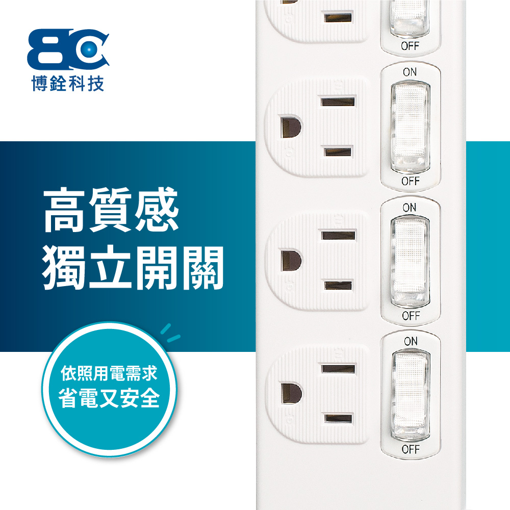 【BC博銓】KTC-636A 防雷擊15A/3.6M/六開六插3孔 90度插頭