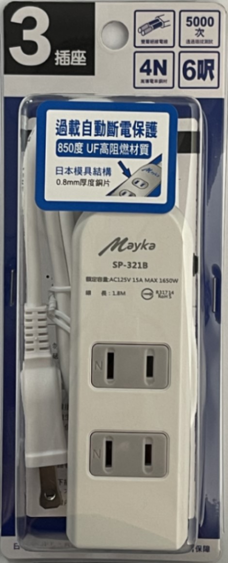 ◆商品名稱:明家家用延長線3(2+1)插座1.8M
