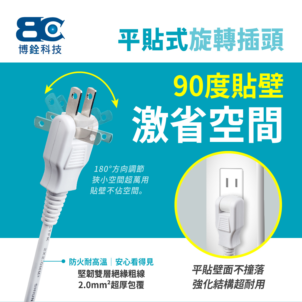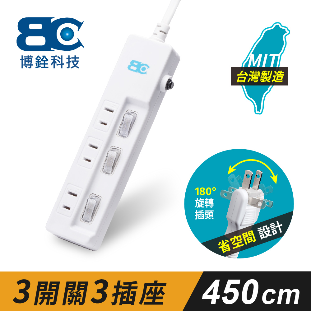 【BC博銓】KTC-98332 15A/4.5M/三開三插2孔 90度插頭