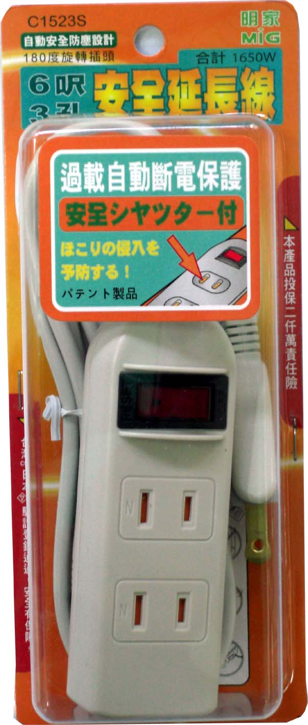◆明家 型號:C1523S-15FT 2P(插孔) x 3插座