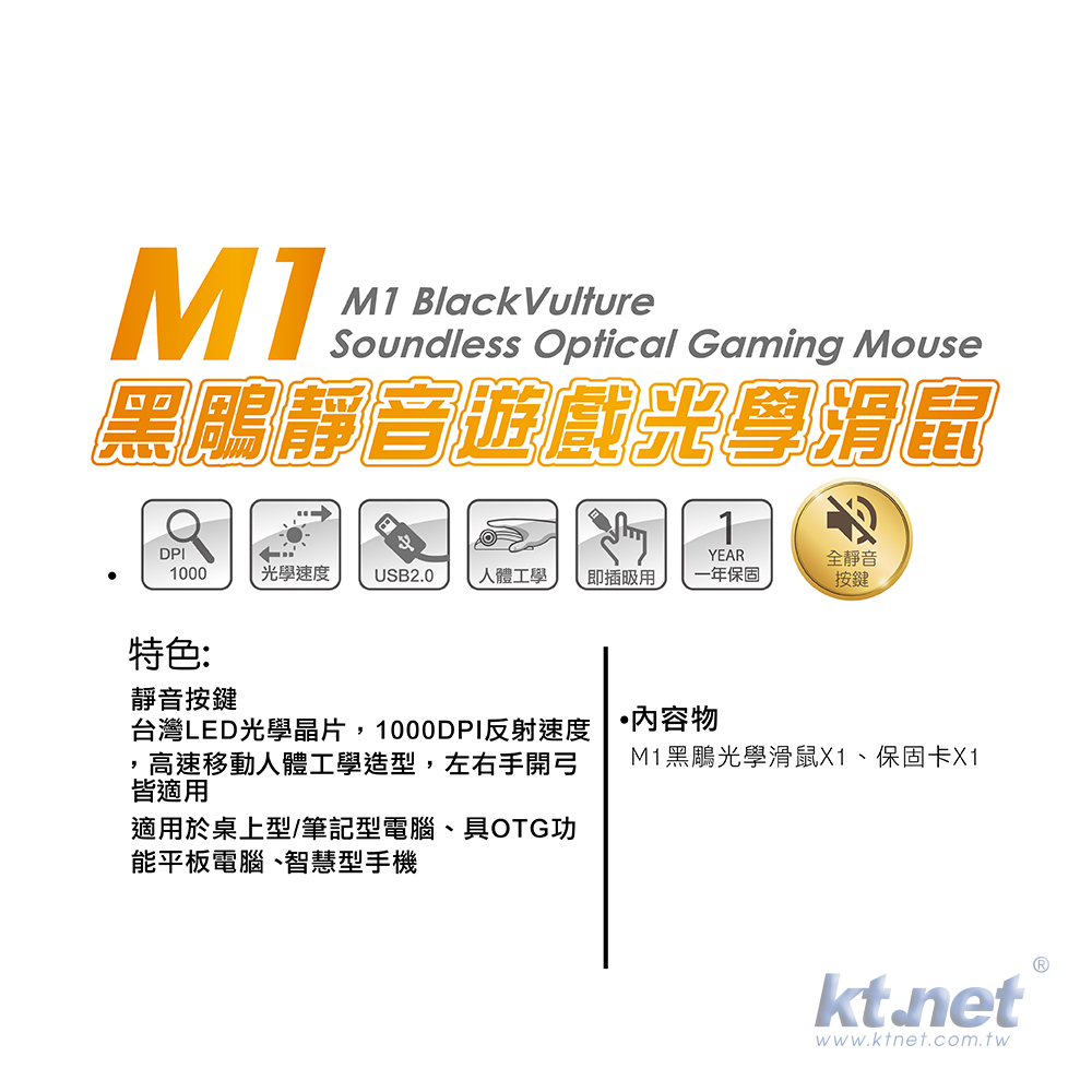 KTNET M1 黑鵰靜音遊戲光學滑鼠 *1
