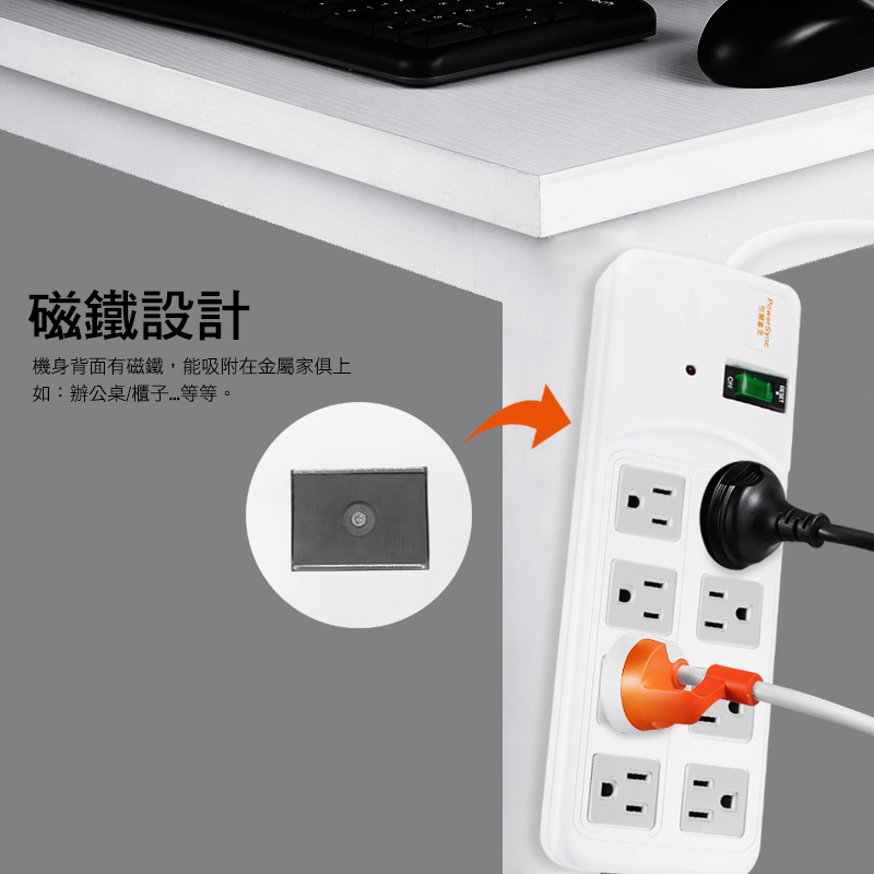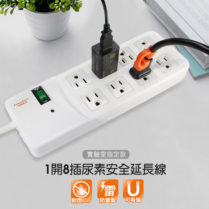● 品名:1開8插尿素安全防雷擊延長線(磁鐵固定)