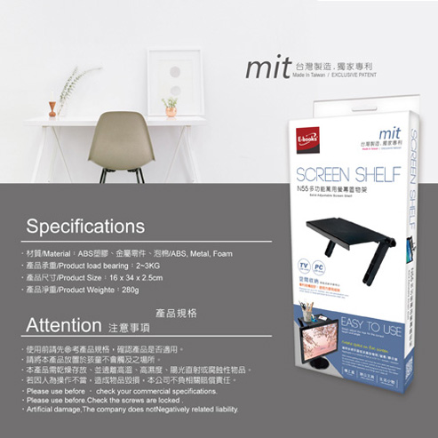 規格 ‧顏色:黑 ‧材質:ABS、金屬零件、泡棉 ‧商品尺寸:16.5*34*2.6cm ‧支撐架使用範圍:可270度上下旋轉調整 ‧產品承重:2~3KG內