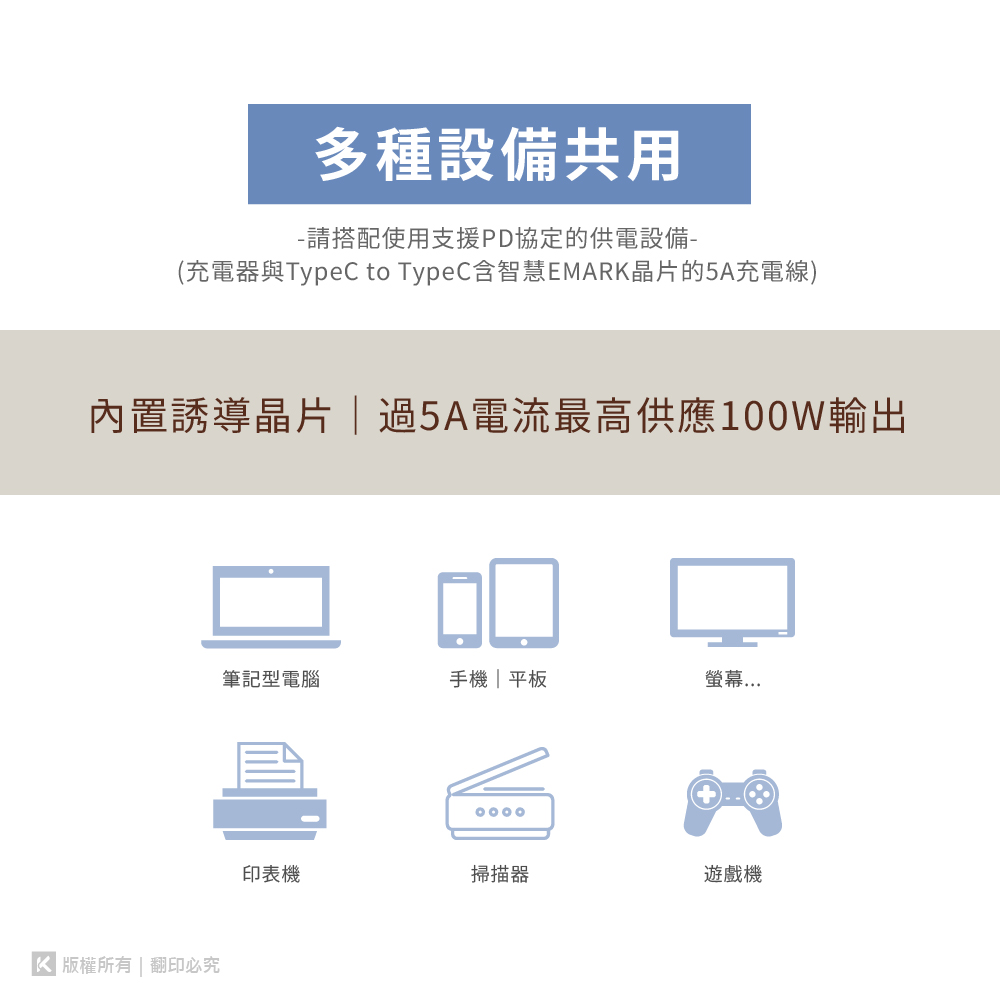 【特色】 1.Typec母轉DC公的電源轉接DC頭 2.支援PD快充協議,內置誘導晶片,過5A電流,最高供應100W輸出 3.搭配PD及Typec口充電器使用,便於針對筆記型電腦.手機.平板.遊戲機.印表機.掃描器.螢幕各項設備供電 4.搭配PD電源頭可為Acer.Asus.HP.聯想Lenovo.Dell.東芝.MSI等供電 產品尺寸 : 32x10x36mm 產品重量 : 12.5g±5g 材 質 : PVC塑料 包裝尺寸 : 82x30x135mm 包裝內容 : 轉接頭x1 【PD 5A快充線連結】 https://b2b.ktnet.com.tw/Product.aspx?PID=KTYTCFF06E-1.2M&CID=34,40,029,052,02 注意事項 1.購買前請確認電源轉接DC頭內外徑尺寸符合您的需求 2.充電頭供電不足會造成時充時不充或斷充狀態 3.TYPEC-TYPEC線請選購5A+全智能晶片線材 4.搭配PD電源頭可為Acer.Asus.HP.聯想Lenovo.Dell.東芝.MSI等供電