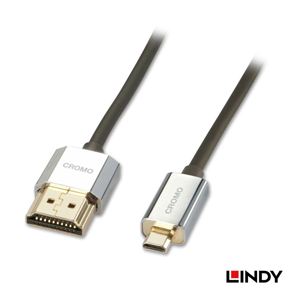 【LINDY】鉻系列 極細型 A公對D公 HDMI 2.0 連接線 2m(41682)