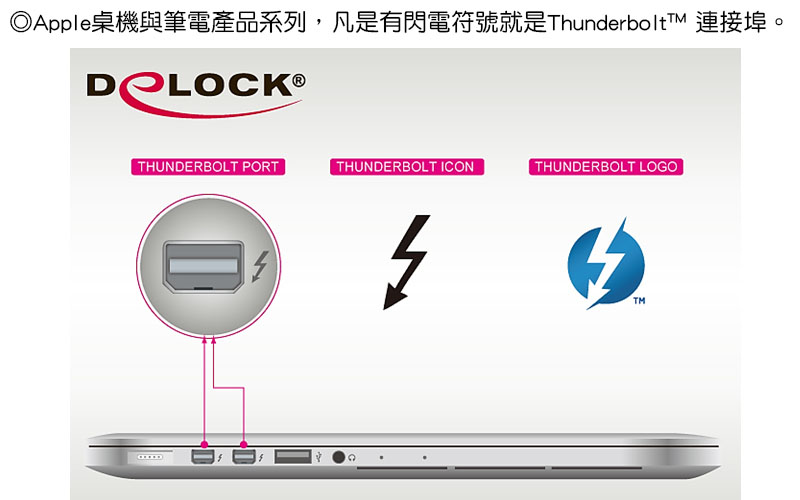 ◆ 支援蘋果電腦系列(MacBook, MacBook Air, MacBook Pro, iMac, Mac Pro, Mac Mini with Thunderbolt™)連接埠。