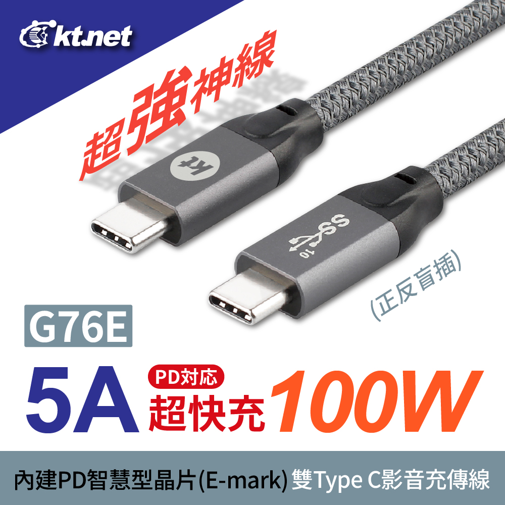• G76E USB3.1 eMark C-C影音充傳編織線5A 1.2M