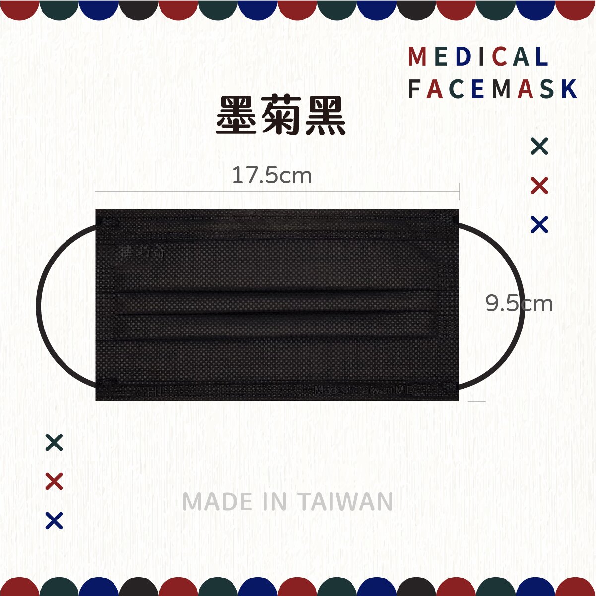 【巧奇】成人醫用口罩 30片入-暗色滿版系列【墨菊黑】-台灣製 MD雙鋼印