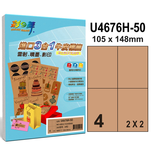 ◆商品名稱:彩之舞進口3合1牛皮標籤 2x2直角 4格無邊