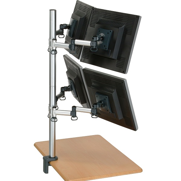 FOGIM夾桌懸臂式四液晶螢幕支架除放大桌面空間,更可調整螢幕高低、遠近、面板傾斜度至最舒適的觀看位置,完全符合人體工學及眼睛保健概念。螢幕架高後,淨空的桌面變得更為寬敞,不但放大了可使用的桌面空間,支撐臂上的集線導線夾特殊設計助於將雜亂線材妥善整理,讓桌面淨空又整齊。