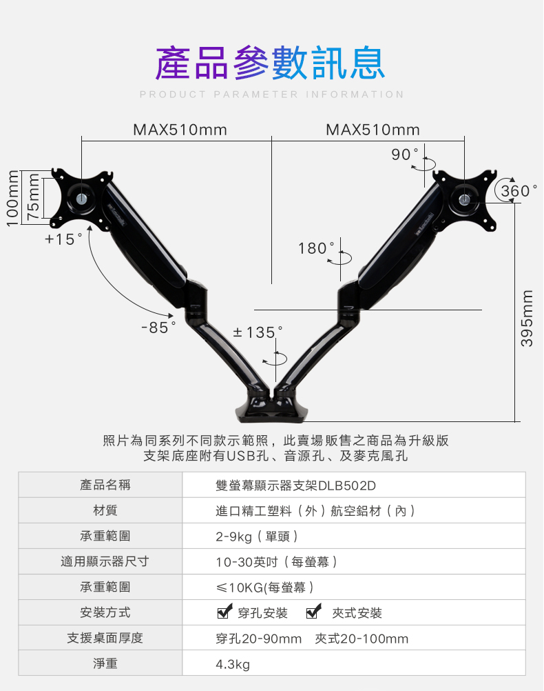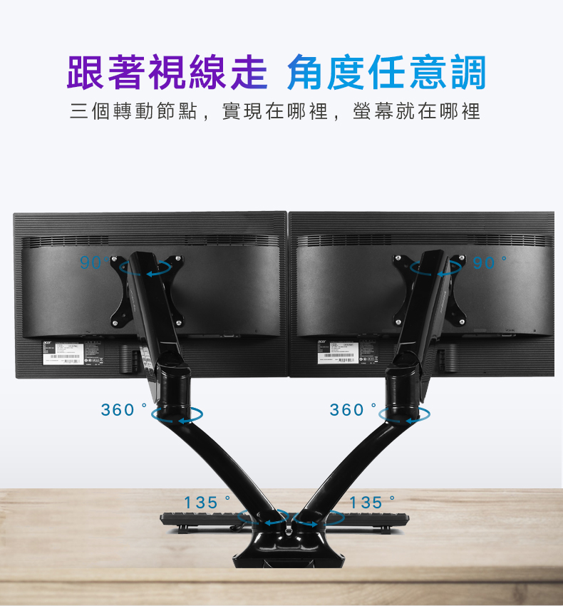 ◆橫豎螢幕搭配 辦公娛樂雙用 ◆氣彈簧升降 隨意自由懸停